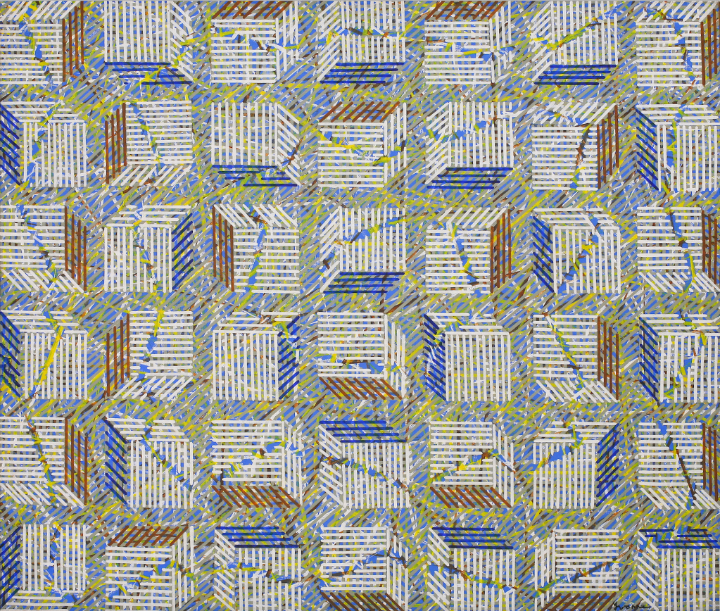 現年58歲的秦一峰既是上海大學美術學院副教授,也是一位明式素工家具收藏家,當然更廣為人知的身分是藝術家。早在1983年,秦一峰已開始創作抽象藝術,多年來一直探討立體與平面的關係,1993年的作品《42個立方》,顧名思義在平面的畫布上繪畫出42個立方體。時至今日,他仍然在畫、依舊在探索,作品超過500幅。