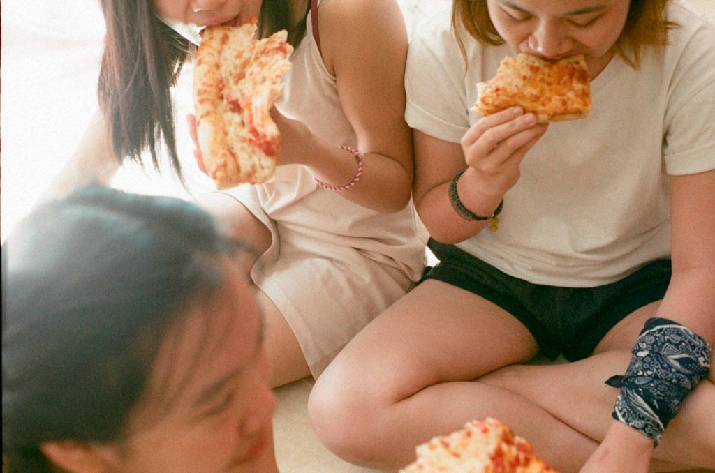 對暴食症的人而言,扣喉更成為一種習慣,「有暴食症朋友每次食完飯就會扣喉嘔吐,其實對身體傷害很大,然而卻又停不了,感覺像在地獄裏無限輪迴。」親身經歷過這個痛苦而壓迫的階段,她好奇究竟是誰向自己灌輸這種思想,這促使自學成才的她,以攝影來探討這個話題,在二〇一八年創作這系列《Teenage Problems》作品,同時告誡自己要拋棄這種心態。她以妹妹與身邊朋友為拍攝對象,記錄她們在青春時期遇見的種種問題,當中就有扣喉的經歷。照片中的女孩們盡情食着薄餅、三文治,然而鏡頭一轉,她們已身在廁所扣喉嘔吐,畫面中瀰漫着朦朧、夢幻的氣息,然而真相卻令人感到悲哀。