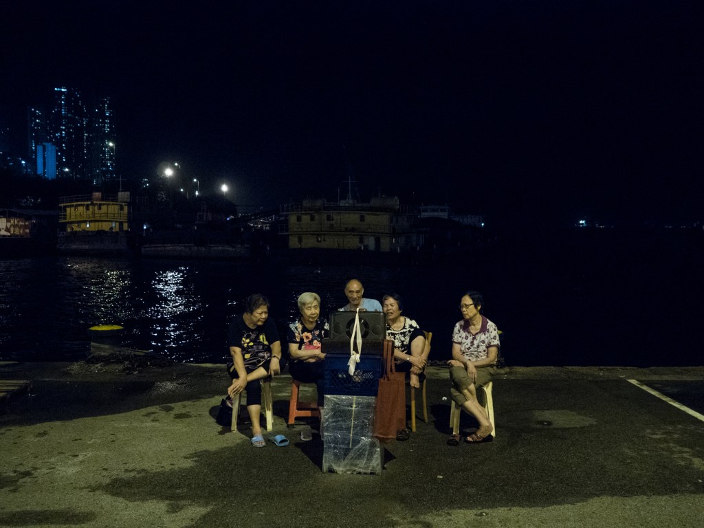 「我是以觀察者的身份拍攝的,對人們在這個空間的行為及如何表現自己深感興趣,這些照片也記錄摩登都市的另一面。」他說大部份人會在黃昏時前來拍照,夜晚則比較多街坊,散步的、做運動的,還有跳舞的姨姨們,街坊們有時更會自攜電視機一齊圍着看粵劇,猶如一個無形的社區中心。「這是一個很有凝聚力的公共空間,我很好奇碼頭關閉後,他們現在能去哪裏?」隨着碼頭悄悄關閉,他希望大家可以從展覽中重溫對西環碼頭的回憶。