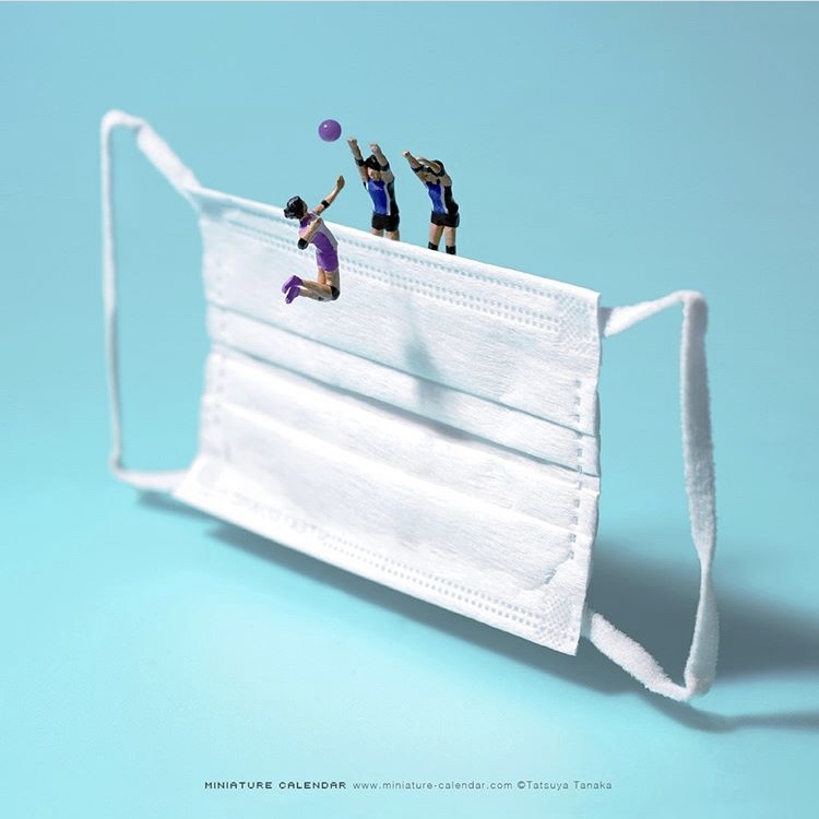 東京奧運近日正式揭幕,疫情下的運動會沒有現場觀眾支持喝采,唯有透過屏幕觀看比賽。田中達也善於以日常物件結合微型公仔創作成有趣的場景,他鏡頭下的奧運會又是怎樣的呢?口罩可謂他的靈感源泉,搖身變為游泳池、跑道、網球場及排球網,口罩繩更變成跳高桿,配合微型公仔的動作,一場運動會即將上演,令人不得不佩服他的創意及想像力。
