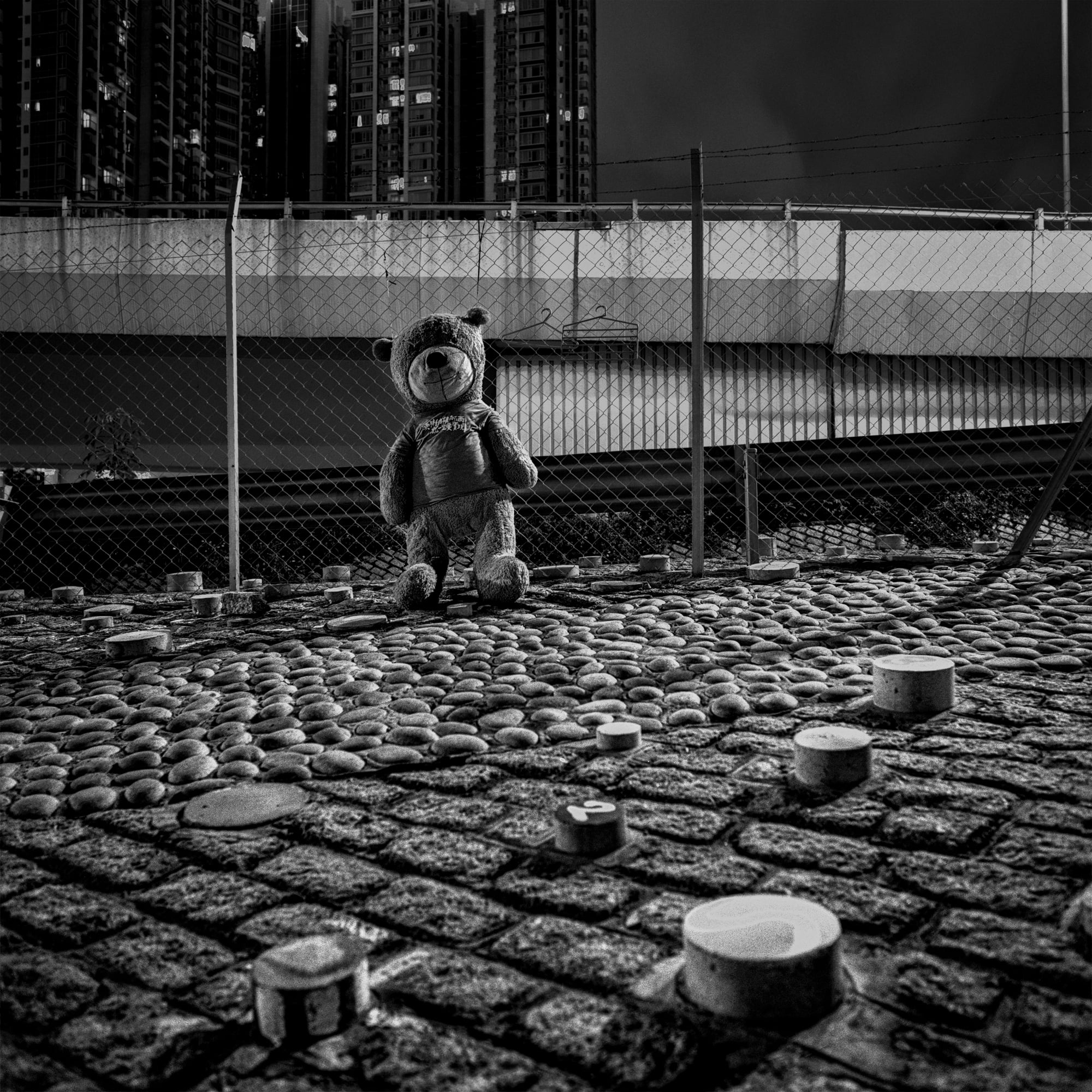 如此「用心良苦」,目的就是不讓人使用這片空間,更確切地說,就是趕走在天橋底露宿的無家者。我們常識中的公共空間,應該以便民利民為前提的,一個理性的政府,見到這麼多人流離失所,理應反思社福政策,趕走棲身於此的露宿者,貧窮問題並不會就此消失,更不代表這些人不需要露宿,只會令他們去更偏僻隱蔽的地方。攝影師周浩文的鏡頭拍攝天橋底的如斯景況,這系列照片可謂一種無聲控訴,某程度上也是對城市空間規劃的詰問。