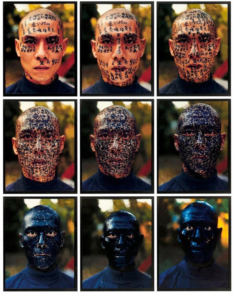隨著墨水越來越多,臉上的文字也逐漸難以辨別,最終變為一片墨黑色,而張洹的臉容也幾乎無法辨認,反而令人專注在他凌厲的眼神。藝術家透過象徵中國傳統的書法,在身處西方世界的他身上留下的痕跡,表達家族、東方文化對個人的影響,以及思索自身中國人的身分。《族譜》現正被M+博物館收藏,展覽現場的九張照片尺寸逾三米,頗具視覺震撼。