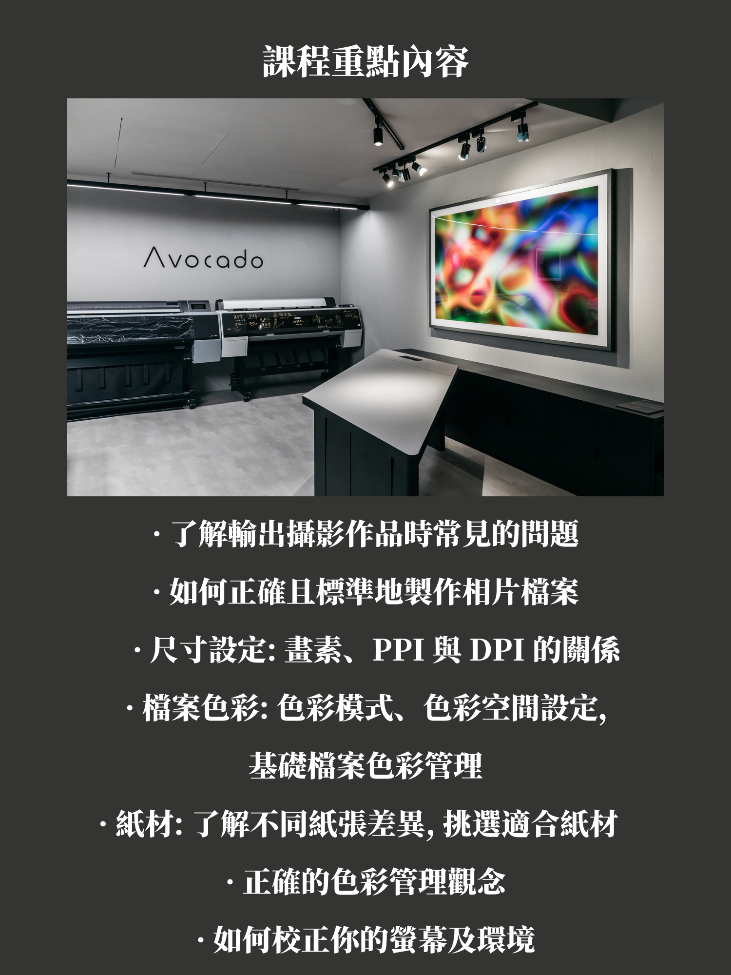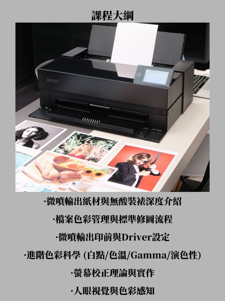 本課程為進階色彩管理與藝術微噴輸出工作坊,專為已具備基本數位影像知識的攝影師、藝術家與創作者設計。