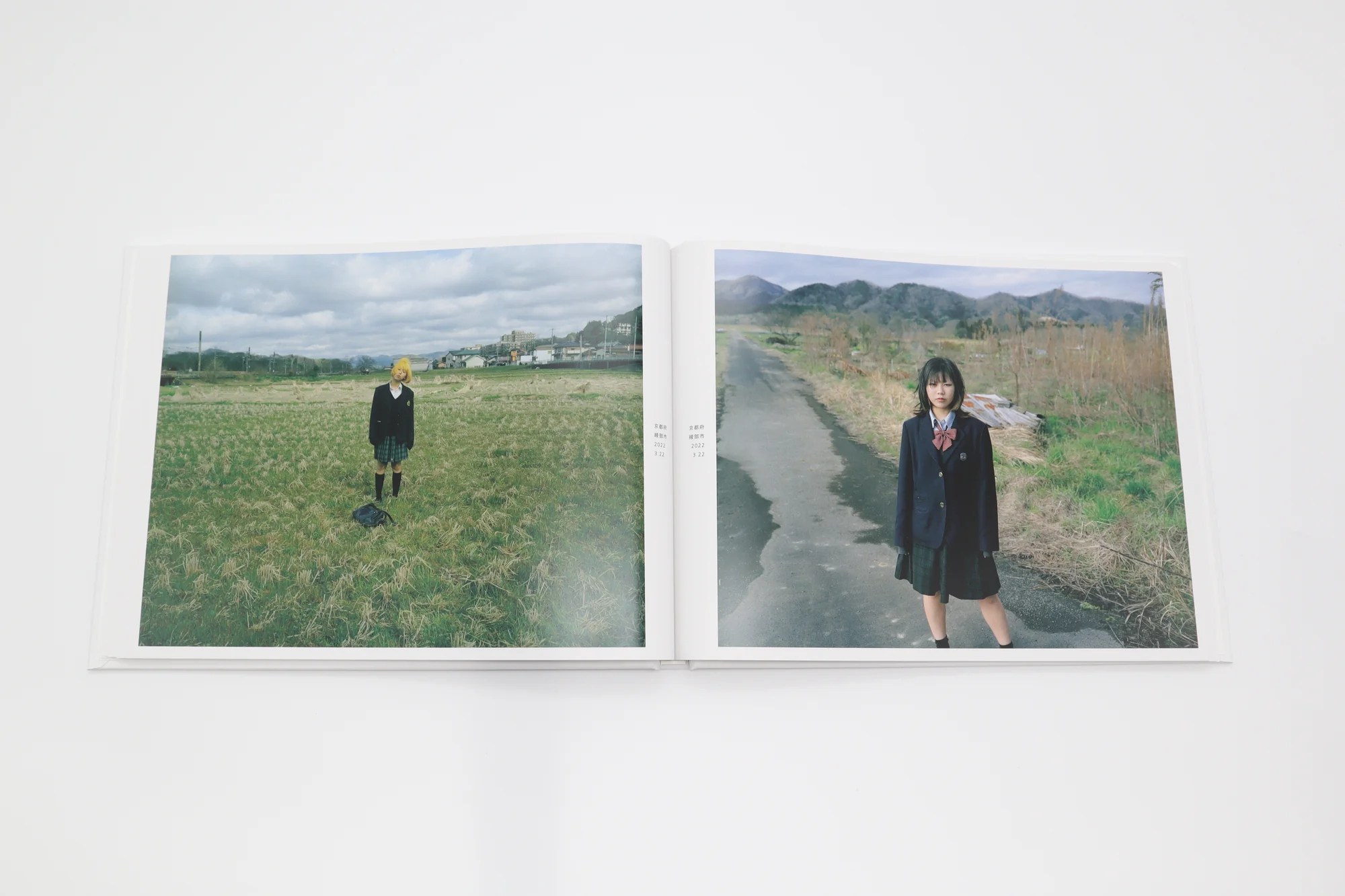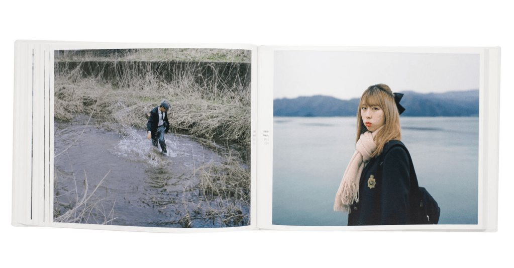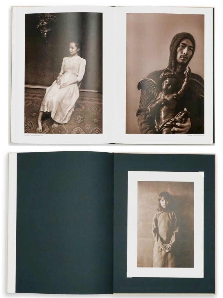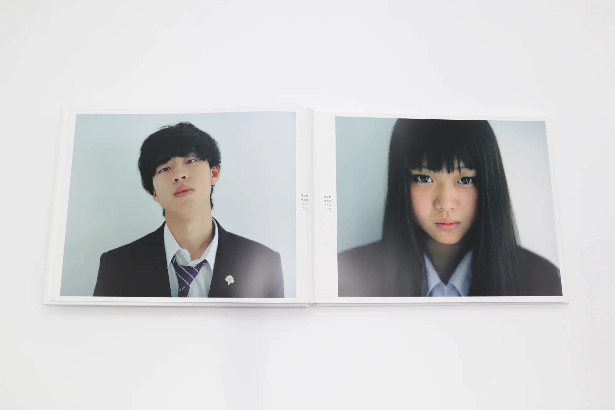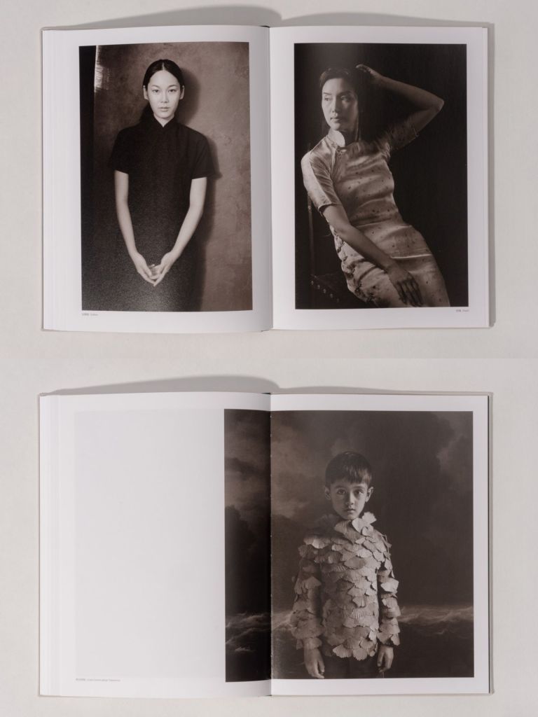 《微塵聖像》於2024年由京都出版社青艸堂輯錄成書,收錄98幅肖像作品。封面上的女孩,是故事裡「預備著的童女」,五官神似演員辛芷蕾,她那純淨而堅定的眼神,似在凝望彼岸的希望。這些肖像多以一部Nikon FM2相機拍攝,藉著自然光定格下神性時刻———宛如晨禱時分透過教堂窗灑落的光,柔和卻帶著神聖的穿透力。