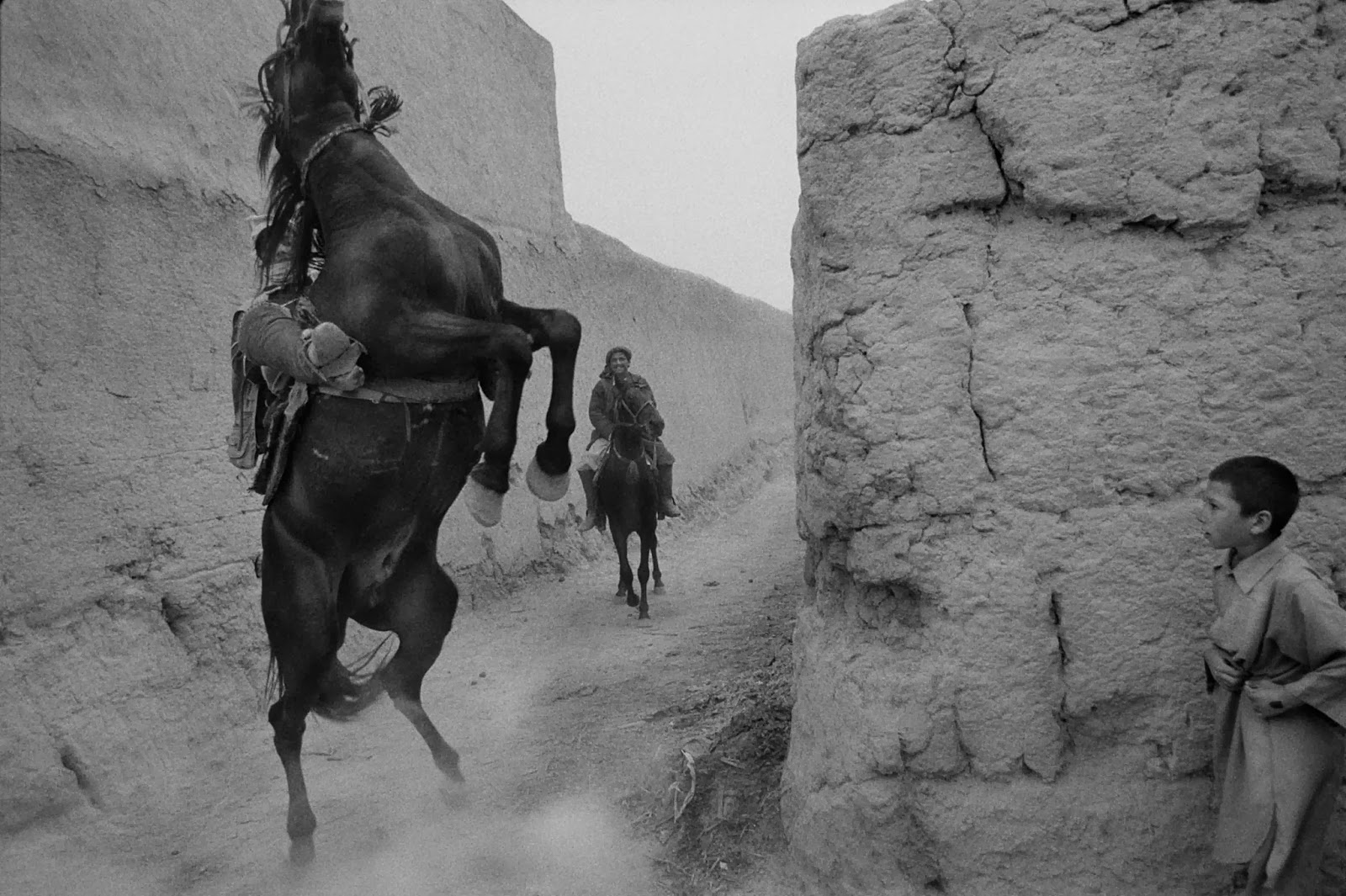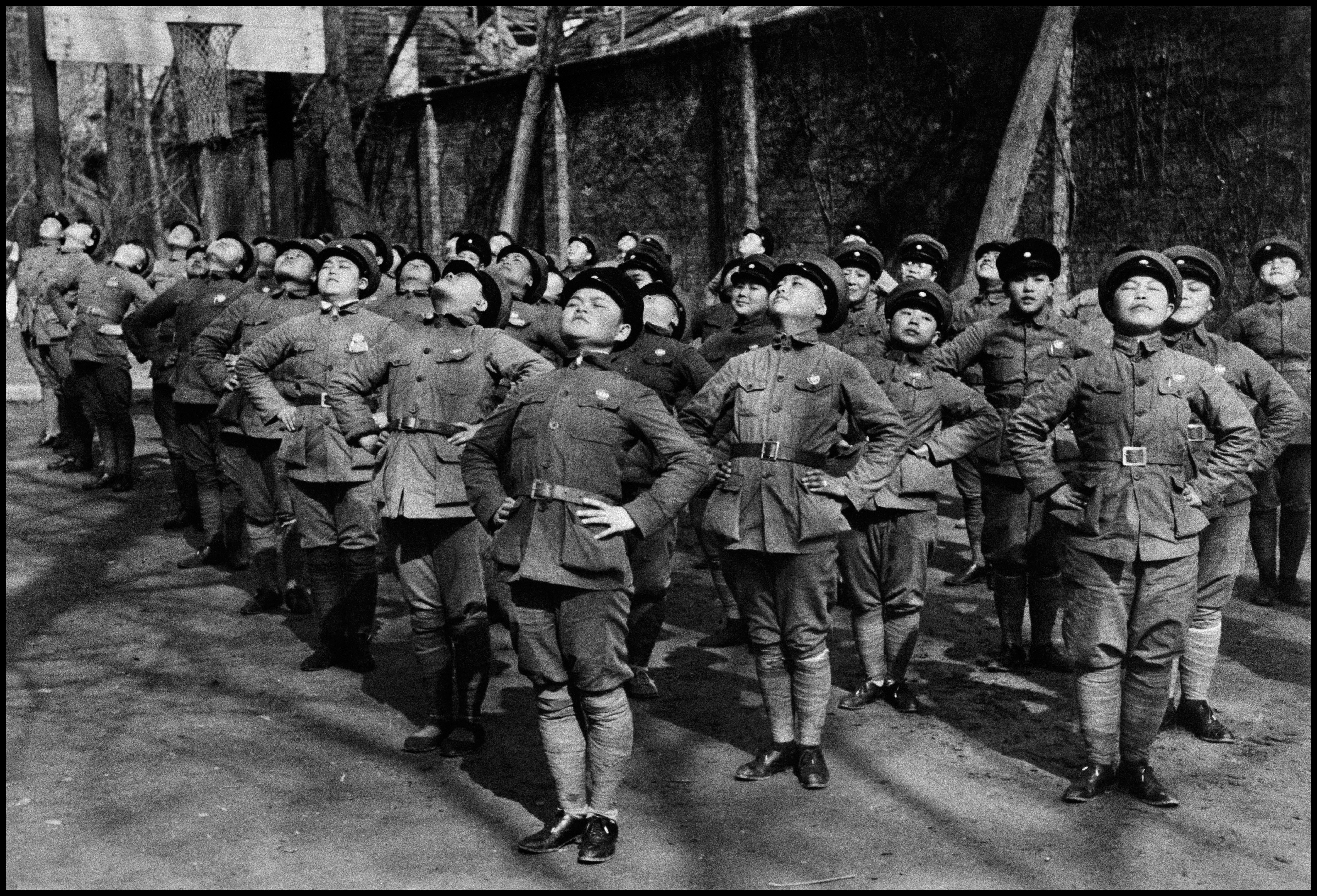 Robert Capa曾為畢加索與孩子拍攝許多生活照,這張照片在1948年拍攝,畢加索第三度做爸爸,66歲老來得子,顯得很份外開心。孩子名為Claude,由畢加索與相差四十歲的Francoise Gilot在1947年所生。在Capa拍攝他們一家三口的照片裏,畢加索幾乎都是笑逐顏開的,可惜好景不常,二人關係也並非一直穩定,1953年,Gilot帶孩子離開年逾七十的畢加索,讓他再次進入痛苦孤獨,幸好枯樹逢春,畢加索很快認識第二任妻子Jacqueline,直至1973年離世,這自是後話。